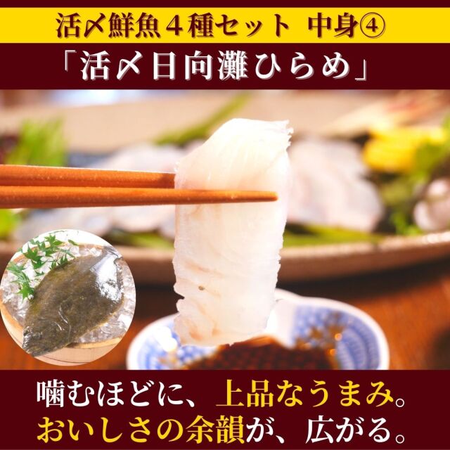 | 製品名: | 【活〆鮮魚4種セット550-650g/日向灘かんぱち・まだい・ひらめ・しまあじ】宮崎県日向灘産/生/下処理済 |